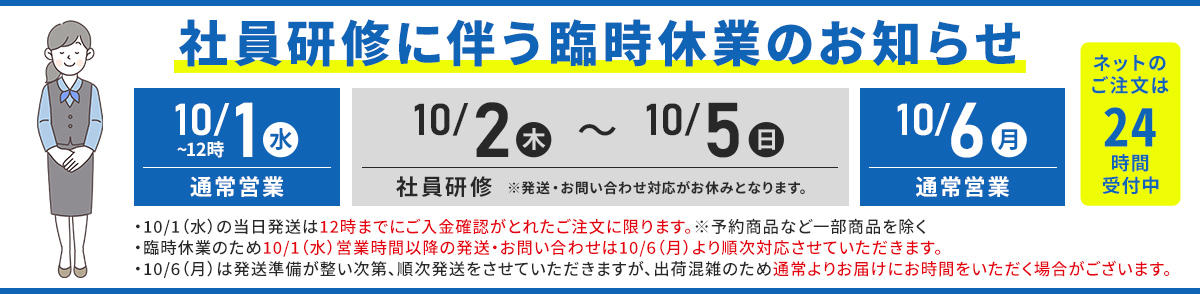 臨時休業期間の営業・発送について
